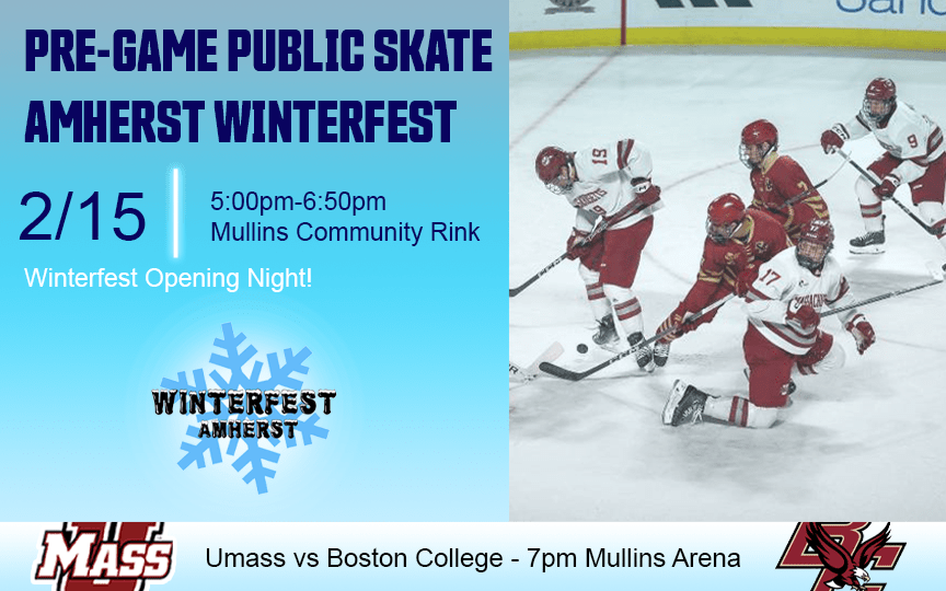 There are nearly a dozen other events on Saturday February 15th, including events at the Hitchcock Center, Jones Library, UMass men’s basketball and hockey games, Amherst Cinema, Amherst Historical Society, Amherst College men’s hockey and basketball games, public skating at the Mullins Center Community Ice Rink, and Amherst College women’s hockey. See details for these and other Amherst Winterfest events HERE