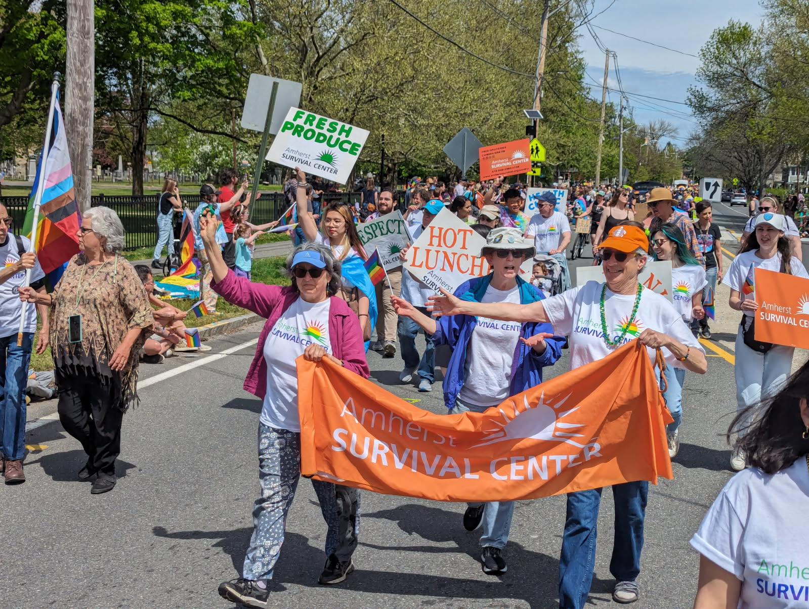 The Amherst march and rally came together quickly. One day in April, Domb was visiting the Survival Center, where she used to be executive director, and was talking to a group that included Lisa Solowiej, the volunteer and outreach manager, and Jan Eidelson, former chair of the Center’s board of directors. They brainstormed how they could make a Pride march and rally happen, and decided to contact Avila, the former Survival Center chef, at the DEI office.